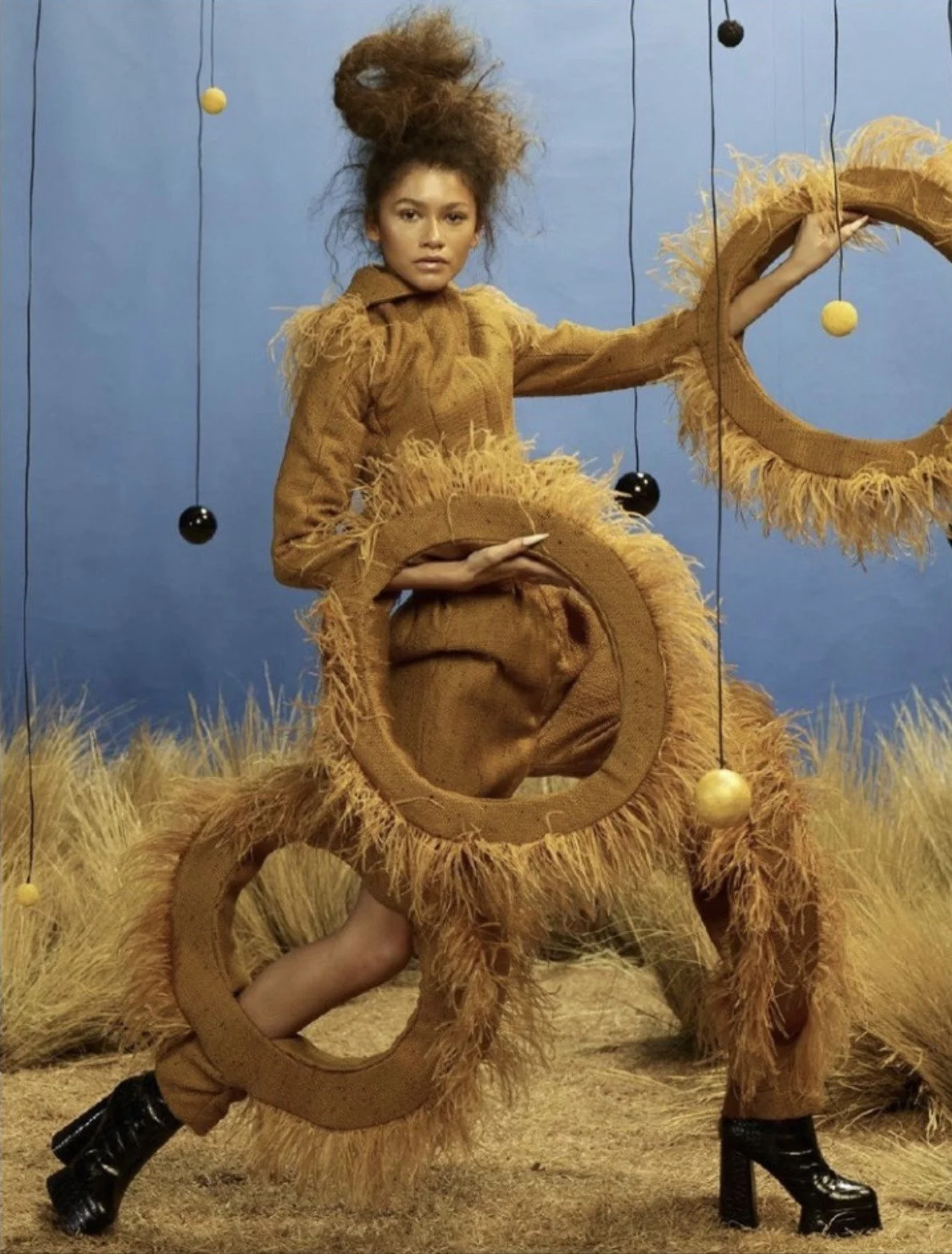 Kenneth Brodys Senior collection, look two featured in Vogue Hong Kong November issue of 2020. Worn by Zendaya and photographed by Djeneba Aduayom, Creative Director Patti Wilson, and Stylist Law Roach.
